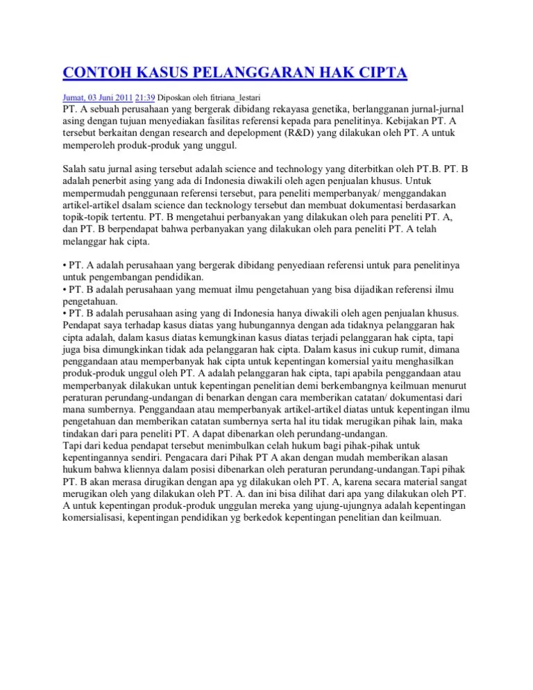 Contoh Artikel Kasus : Kasus Kasus Pelanggaran Hak Dan Pengingkaran Kewajiban Warga Negara Serupa Id - Dilaporkan atas kasus pencemaran nama baik, medina zein minta dijemput polisi pakai mobil mewah · dewi suci rahmadhani · hubungan, showbiz .. Fasilitas dan ruangan untuk publik; Kasus, hal ini menyebabkan jatuhnya kekuasaan pemerintahan secara tidak terhormat, seperti yang terjadi di indonesia.15 d. Pada tanggal 20 juni 2011, auditor menemukan bahwa salah satu debitur . Kasus novel baswedan menjadi bukti kesekian dan menambah daftar sengkarut keadilan dalam penegakan hukum. Klinik sebagai salah satu rubrik favorit di hukumonline semakin menjaga kredibilitasnya dalam menyediakan edukasi hukum bagi masyarakat .